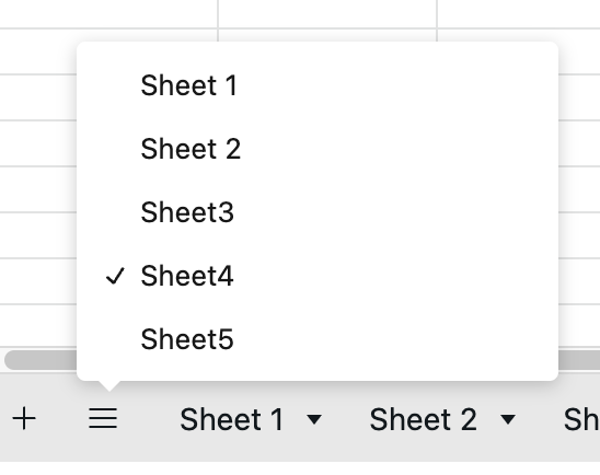 <figure><img src="https://67932947-files.gitbook.io/~/files/v0/b/gitbook-x-prod.appspot.com/o/spaces%2FHWsslZpYESUXxPccoyig%2Fuploads%2Fgit-blob-a5e07b6ff2a598e305c21c225f64df813b558135%2Fimage.png?alt=media" alt=""><figcaption><p>Sheet Switcher</p></figcaption></figure>