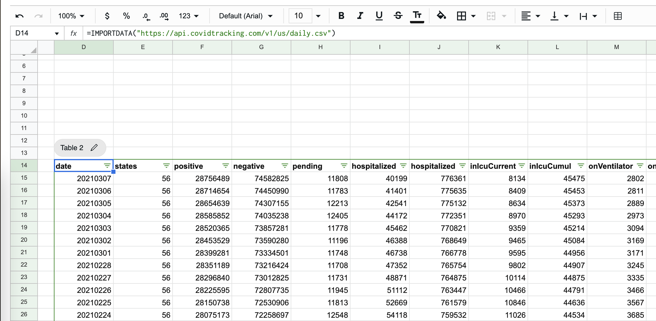 =IMPORTDATA("https://api.covidtracking.com/v1/us/daily.csv")